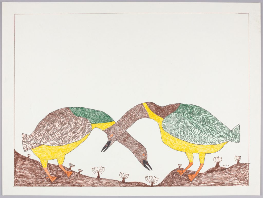 Drawing for print Geese Feeding