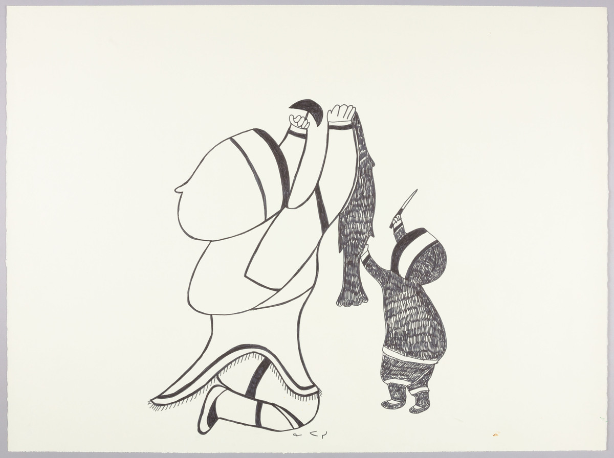 Drawing for print Mother and Child with Fish
